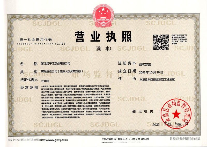 公司名稱:浙江揚子江泵業(yè)有限公司