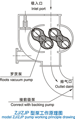 羅茨真空泵主要由一對同步高速旋轉(zhuǎn)的“8”字形轉(zhuǎn)子與兩個半圓形的泵腔組成。該泵不能單獨排氣,必須與前級泵(如滑閥泵、旋片泵、水環(huán)泵、油環(huán)泵等)串聯(lián)使用。在前級泵進氣口前面串聯(lián)上羅茨真空泵組成機組可提高前級泵的真空度,在有效范圍內(nèi)可大大提高抽氣速率。羅茨真空泵的極限壓力由前級泵決定,表中數(shù)據(jù)為標準配置(配用雙級油封式機械真空泵)時的低極限壓力。羅茨泵廣泛使用于真空澆鑄、真空熔煉、真空脫氣、真空鍍膜行業(yè)及化工醫(yī)藥行業(yè)的真空蒸餾、真空干燥等。泵對小量灰塵不敏感。 本公司羅茨真空泵經(jīng)過10余年不斷改進,有以下優(yōu)點: ●因轉(zhuǎn)子采用高精度專用數(shù)控機床加工,并作精細平衡校驗,具備良好的幾何對稱性,轉(zhuǎn)子嚙合間隙均勻。泵體、側(cè)蓋采用專用機床加工,精度高。因此本公司羅茨真空泵運轉(zhuǎn)平穩(wěn)、噪聲低、振小、極限真空度高。 ●因泵的傳動部件采用可靠的消隙結(jié)構(gòu),故泵可高壓差下長期工作。 ●起動快,能在短時間內(nèi)達到極限真空。 ●因泵腔內(nèi)無互相滑動的零件,無需用油潤滑,避免了油蒸汽對系統(tǒng)的污染。 ●安全可靠,ZJP系列本身配帶溢流閥起自動保護作用。 ●結(jié)構(gòu)緊湊,占地面積小。左、右、下面三個排氣口可以任選一個,方便用戶安裝。
