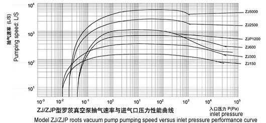 注:表中極限壓力是指用麥式真空計測得。 注:ZJP系列指帶溢流閥結(jié)構(gòu)。 注:ZJC、ZJPC磁力驅(qū)動羅茨真空泵性能參數(shù)分別與ZJ、ZJP型泵相同。