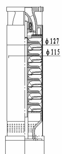 從資料看這一時期比較成熟的設(shè)計之一是模仿普通立式多級離心泵,采用正反導(dǎo)葉,葉輪采用優(yōu)秀水力模型,導(dǎo)葉設(shè)計采用等速度矩原理。另一種采用空間導(dǎo)葉,葉輪采用優(yōu)秀水力模型,考慮葉輪與空間導(dǎo)葉的相互作用,把兩者作為一個整體來設(shè)計。這些設(shè)計思想在當(dāng)時的產(chǎn)品中得到很好得貫徹和體現(xiàn)。