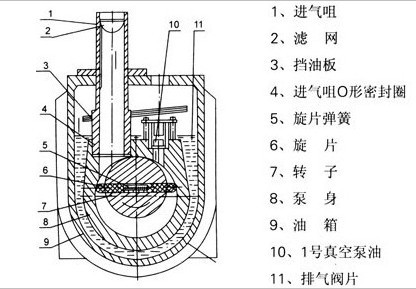圖一:2XZ型旋片式真空泵的結(jié)構(gòu)圖 |