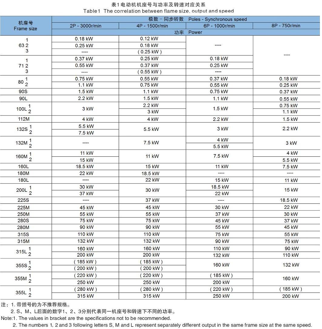 1、電機(jī)機(jī)座號(hào)與功率及轉(zhuǎn)速對(duì)應(yīng)關(guān)系
