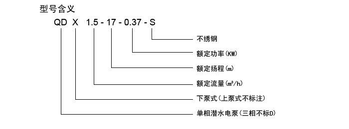 8、電壓除了可以做220V以外,還可以做380V電壓型號(hào)將變?yōu)?SPAN lang=EN-US>QX不銹鋼潛水泵。