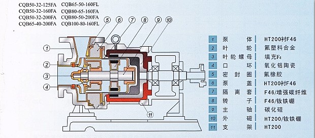 CQB型磁力泵是化工流程中杜絕跑、冒、滴、漏現(xiàn)象,消除環(huán)境污染,創(chuàng)造“無泄漏車間”、“無泄漏工廠”,實(shí)現(xiàn)安全、文明生產(chǎn)的理想用泵。