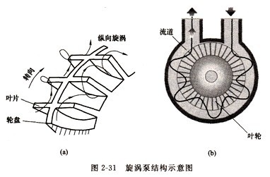 旋渦泵葉輪具有開(kāi)式和閉式兩種,閉式葉輪葉片凹槽內(nèi)設(shè)有中間隔板,如圖2-31(a)所示:開(kāi)式葉輪無(wú)中間隔板。