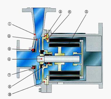 CQ型不銹鋼磁力驅(qū)動(dòng)泵結(jié)構(gòu)圖: