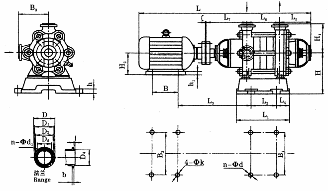 | 泵型號(hào) | 進(jìn)口法蘭尺寸 Size of Inlet Flange | ||||||