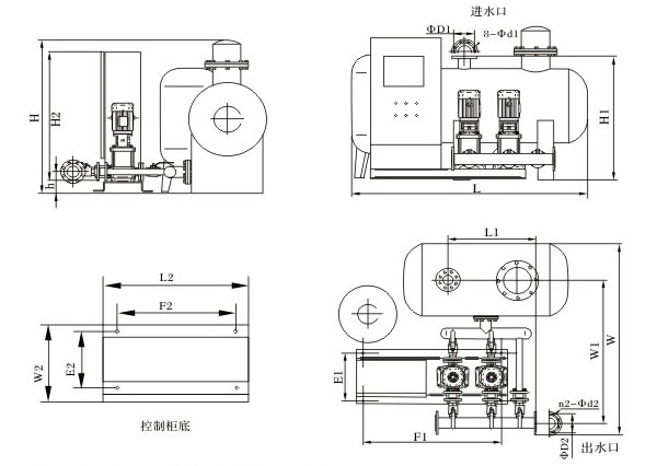 一用一備二用一備無負壓供水設(shè)備安裝尺寸圖
