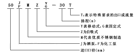 ■ JMZ、FMZ型移動(dòng)式防爆酒精泵,防爆衛(wèi)生食品泵,防爆輸藥泵,酒精卸車泵,防爆自吸乙醇泵型號(hào)意義:
