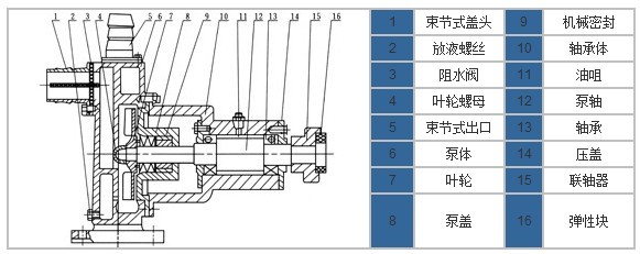 JMZ、FMZ自吸酒泵-自吸化工泵的結(jié)構(gòu)示意圖: