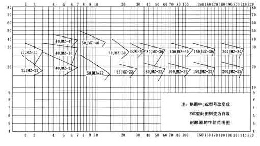 JMZ、FMZ自吸酒泵-自吸化工泵性能曲線圖: