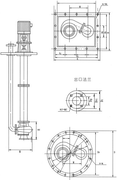 FYB型不銹鋼防爆液下泵結(jié)構(gòu)安裝尺寸圖