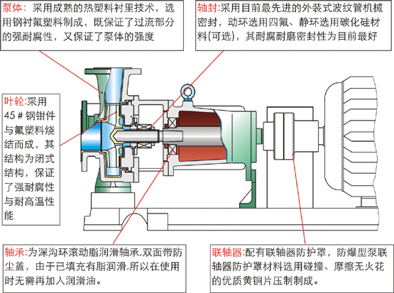 四、氟塑料離心泵結(jié)構(gòu)與材料: