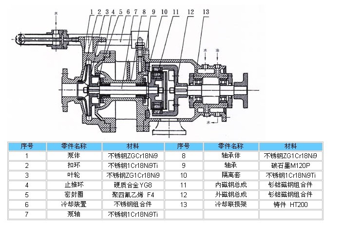 磁力泵零部件結構圖分析