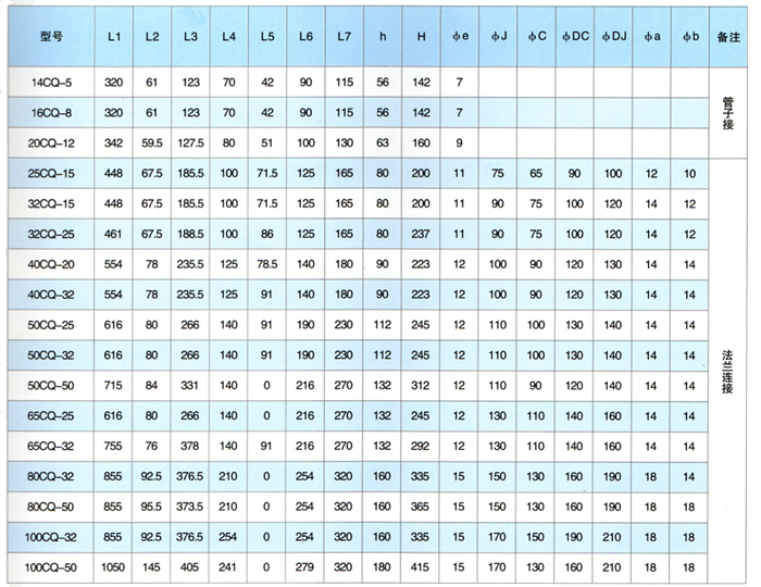 CQ型磁力驅(qū)動(dòng)泵性能參數(shù)