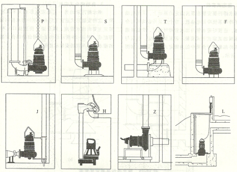 8、半永久性安裝于套管內(nèi)L,這種安裝非常簡單,適用于最小的裝置,排出套管由預制的混凝土管圈組成,與潛水泵的吸、排水管道相連接。