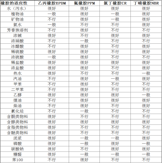 型單螺桿泵定子材質(zhì)參考表