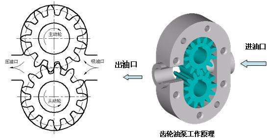 齒輪泵是用兩個齒輪互嚙轉(zhuǎn)動來工作,對介質(zhì)要求不高。一般的壓力在6MPa以下,流量較大。 齒輪油泵在泵體中裝有一對回轉(zhuǎn)齒輪,一個主動,一個被動,依靠兩齒輪的相互嚙合,把泵內(nèi)的整個工作腔分兩個獨立的部分。A為吸入腔,B為排出腔。齒輪油泵在運轉(zhuǎn)時主動齒輪帶動被動齒輪旋轉(zhuǎn),當(dāng)齒輪從嚙合到脫開時在吸入側(cè)(A)就形成局部真空,液體被吸入。被吸入的液體充滿齒輪的各個齒谷而帶到排出側(cè)(B),齒輪進(jìn)入嚙合時液體被擠出,形成高壓液體并經(jīng)泵排出口排出泵外。