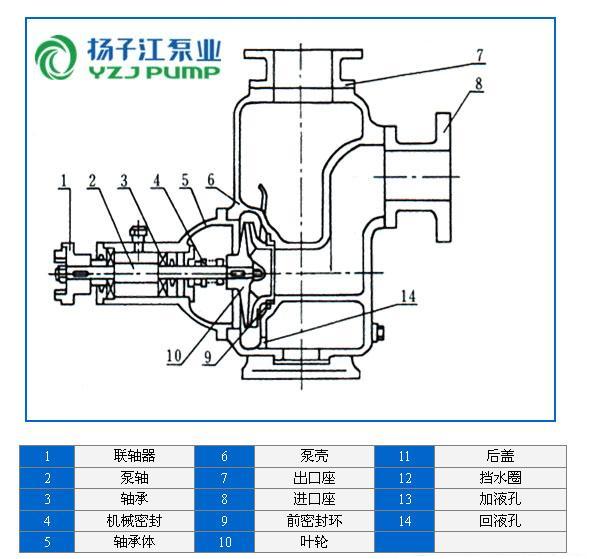 在一些泵的軸承體底部還設(shè)有冷卻室。當(dāng)軸承發(fā)熱引起軸承體溫升超過70℃吋.可在冷卻室處通過任意一只冷卻液管接頭.注入冷卻液循環(huán)冷卻。泵內(nèi)部防止液體由高壓區(qū)向低壓區(qū)泄漏的密封機(jī)構(gòu)是前后密封環(huán).前密封環(huán)裝在泵體上.后密封環(huán)裝在軸承體上,當(dāng)泵經(jīng)長期運轉(zhuǎn)密封環(huán)磨損到一定程度,并影響到泵的效率和自吸性能吋.應(yīng)給予更換。