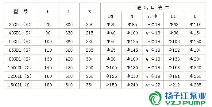 GDL型立式多級管道離心泵安裝尺寸圖: