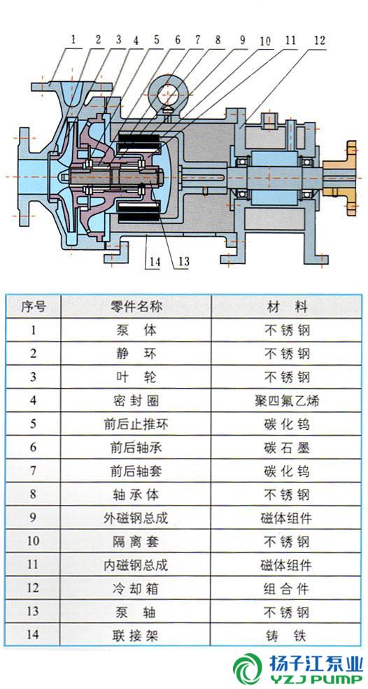 CQB-G系列高溫磁力驅動離心泵結構圖:
