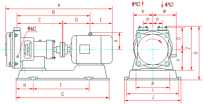 SZB-4、SZB-8水環(huán)式真空泵外形及安裝尺寸圖