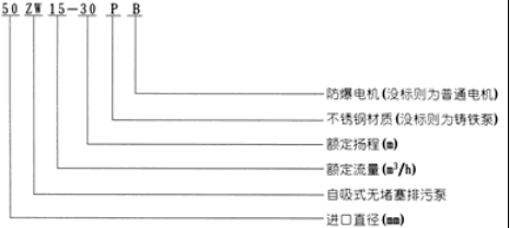三、ZW型自吸式無堵塞排污泵型號意義