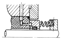 用彈簧壓緊密封端面;有時(shí)用彈簧傳遞扭矩由于端面磨損,使彈簧力在10%"-20%范圍內(nèi)變化。制造簡(jiǎn)單,使用范圍受輔助密封圈耐溫限制 |