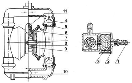 六、QBY系列工程塑料隔膜泵結(jié)構(gòu)圖