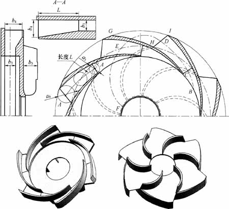 圖9-17正導(dǎo)葉螺旋線部分和擴散段的設(shè)計