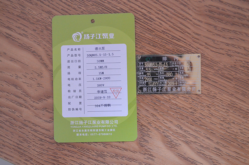 > 潛水泵系列合格證
