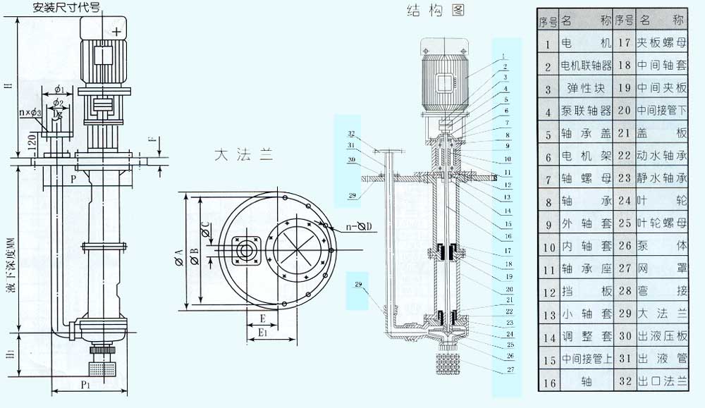 FYS型氟塑料液下泵為立式結(jié)構(gòu),泵體、葉輪部分浸沒在液體里,故占用較小面積,軸封無泄漏現(xiàn)象,因而適用于輸送介質(zhì)溫度為-5℃至105℃腐蝕性液體。泵的轉(zhuǎn)向應(yīng)按泵所指方向啟動。不能反轉(zhuǎn)運行,啟動時泵體必須淹沒在液體中。A:增強聚丙烯�!:聚偏氟乙烯�!:氟塑料合金
