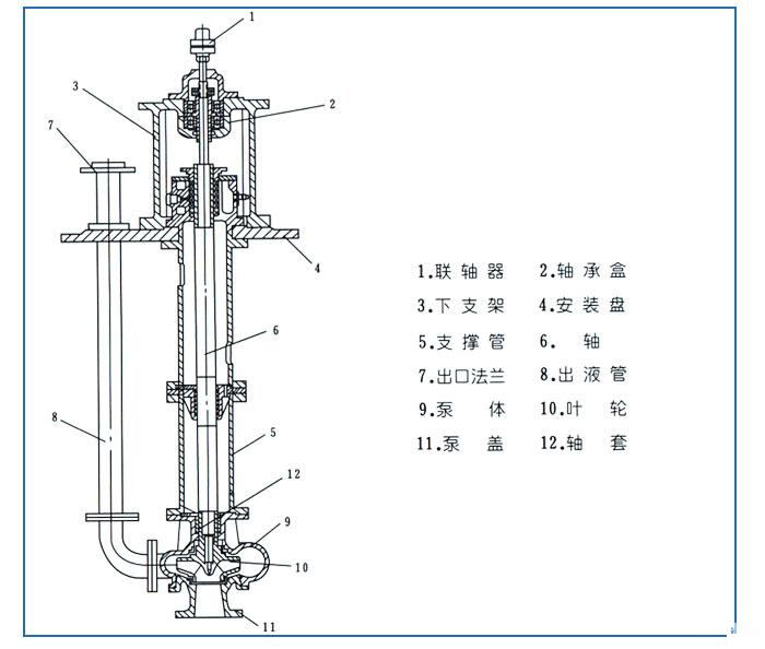1、泵為立式液下泵,外形美觀,直接安裝在被輸送介質(zhì)的儲(chǔ)存器上,無額外占地面積,從而降低了基建投入。