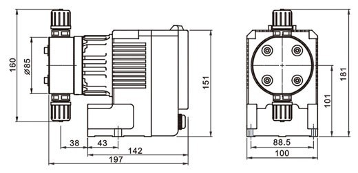 為確保有效操作,安裝時計量泵進(jìn)出口必須保持豎直。