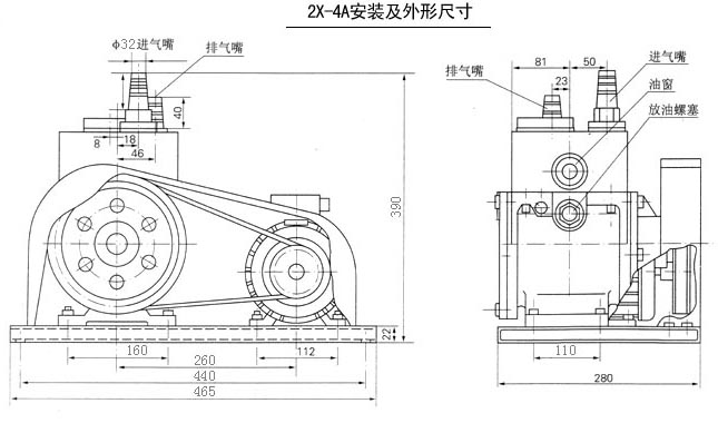 注:安裝時應小心,防止鐵屑、污物、塵埃等落入旋片真空泵內.