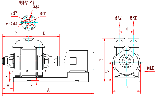SK型水環(huán)式真空泵外型及連接圖